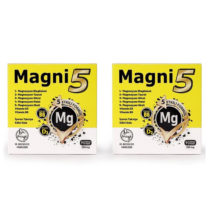 Magni5 Magnezyum Vitamin D3 B6 İçeren Takviye Edici Gıda 2 x 90 Kapsül